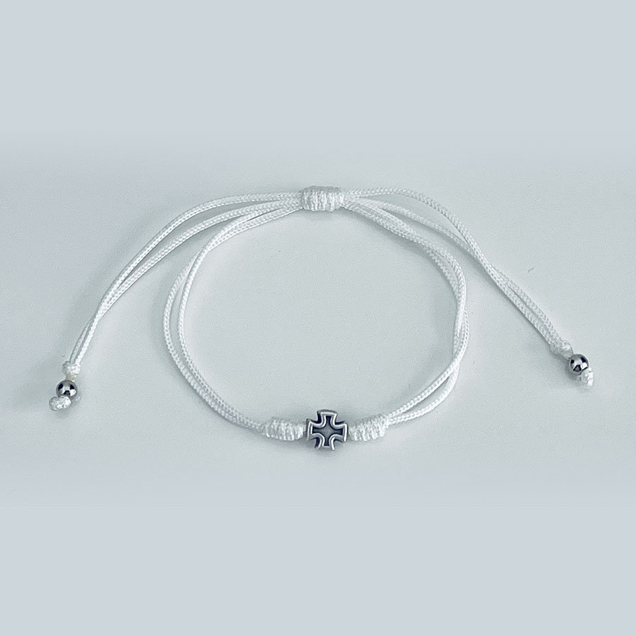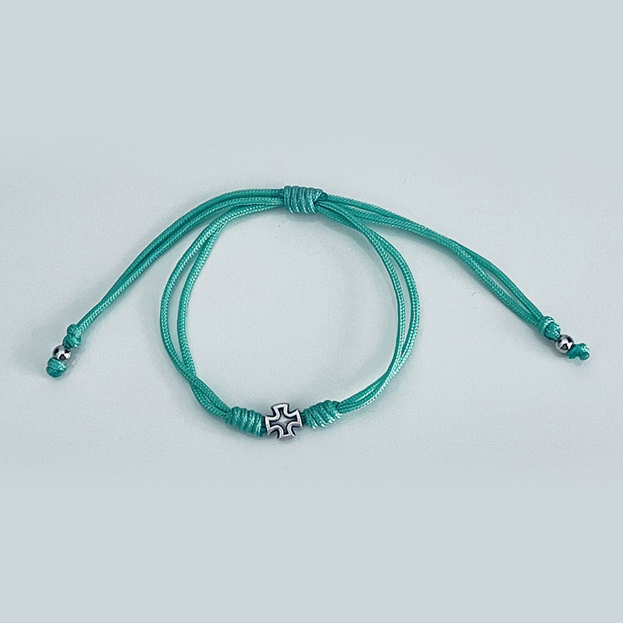 The beautiful bracelet from Međugorje. Each bracelet is handmade using 1 silver cross Italian bead. Bracelet can be adjusted from 14 cm to 26 cm (5,5″ to 10″), and this size fits most. It is a beautiful medal that protects the person who is wearing it.