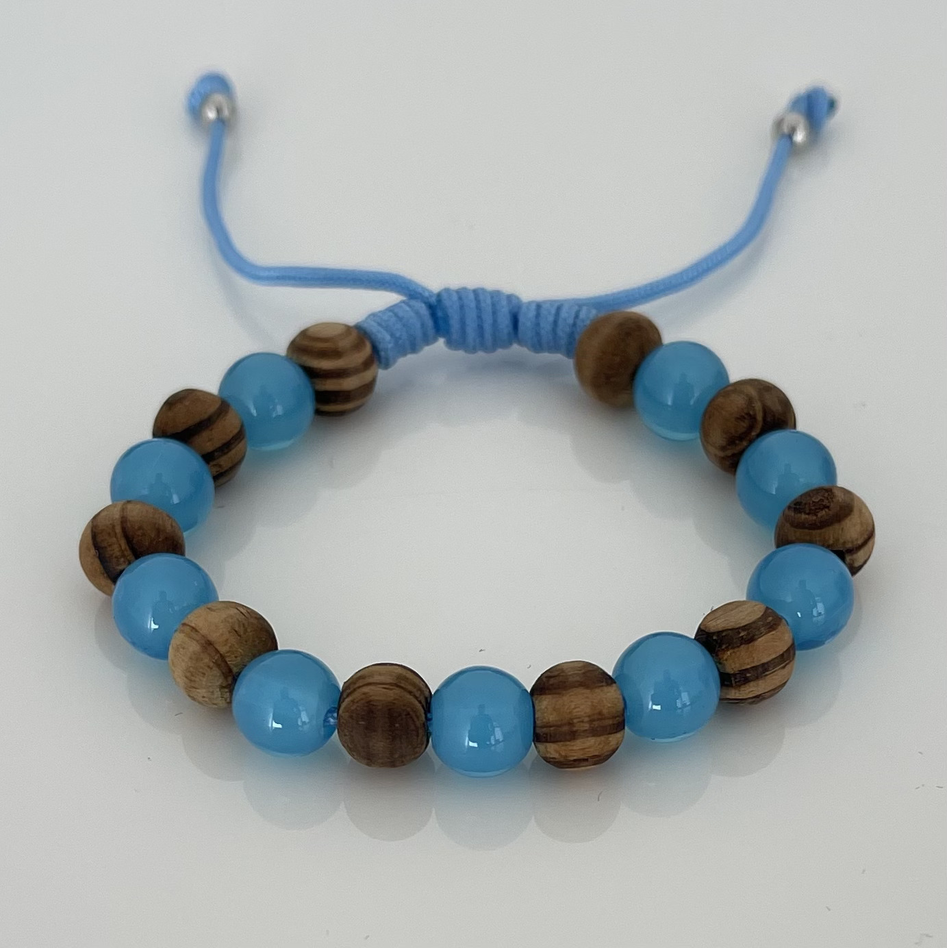 The beautiful bracelet from Međugorje. Each bracelet is handmade using olive and blue beads. Bracelet can be adjusted from 14 cm to 26 cm (5,5″ to 10″), and this size fits most.