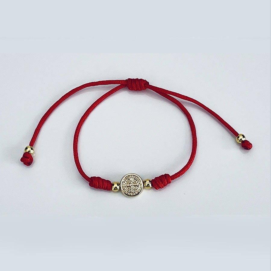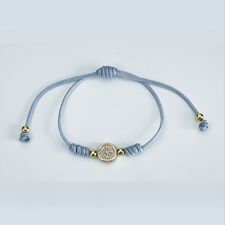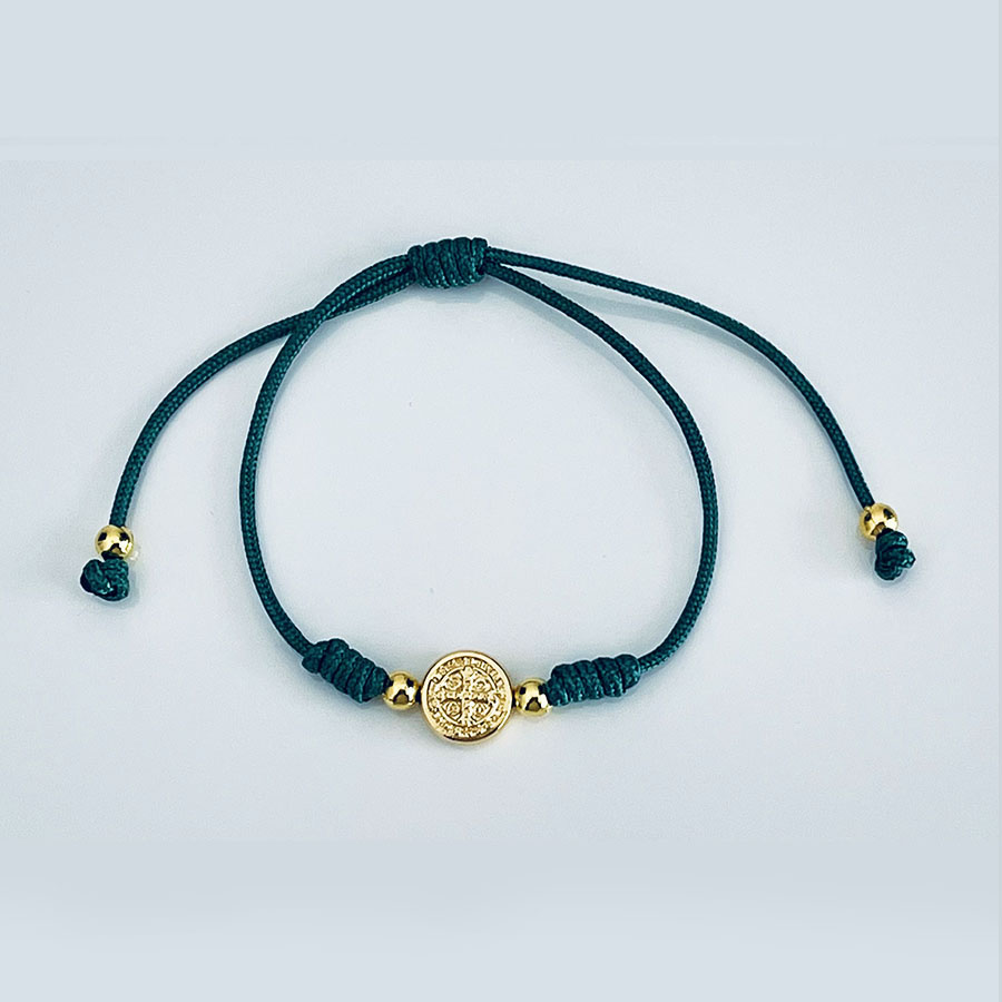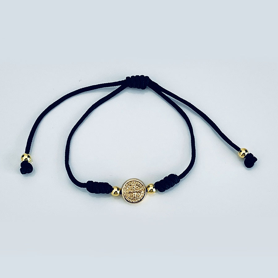 The beautiful bracelet from Međugorje. Each bracelet is handmade using 1 gold St. Benedict Italian bead. Bracelet can be adjusted from 14 cm to 26 cm (5,5″ to 10″), and this size fits most. This medal is your way to obtain God's blessings and protection through the intercession of St. Benedict.