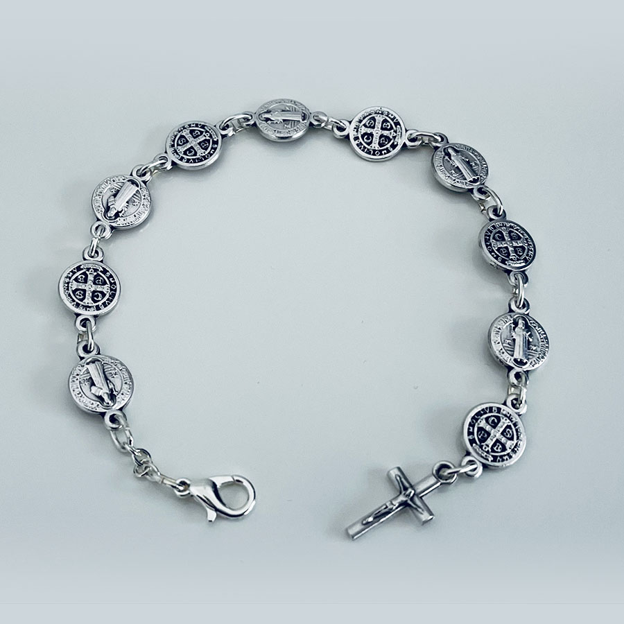 It is handmade in Medjugorje where Our Lady Gospa appeared. Bracelet fits most.The beautiful bracelet from Međugorje. Each bracelet is handmade using 10 silver St. Benedict Italian medals. This medal is your way to obtain God's blessings and protection through the intercession of St. Benedict.