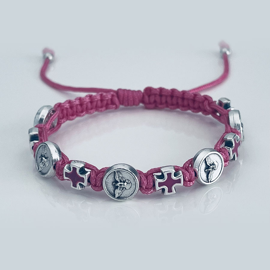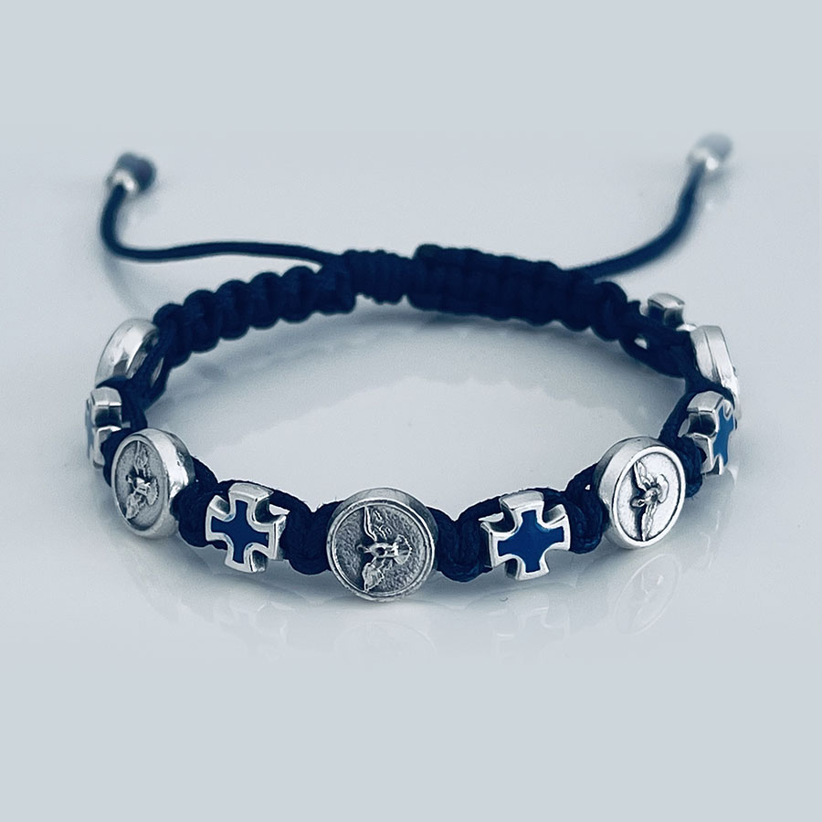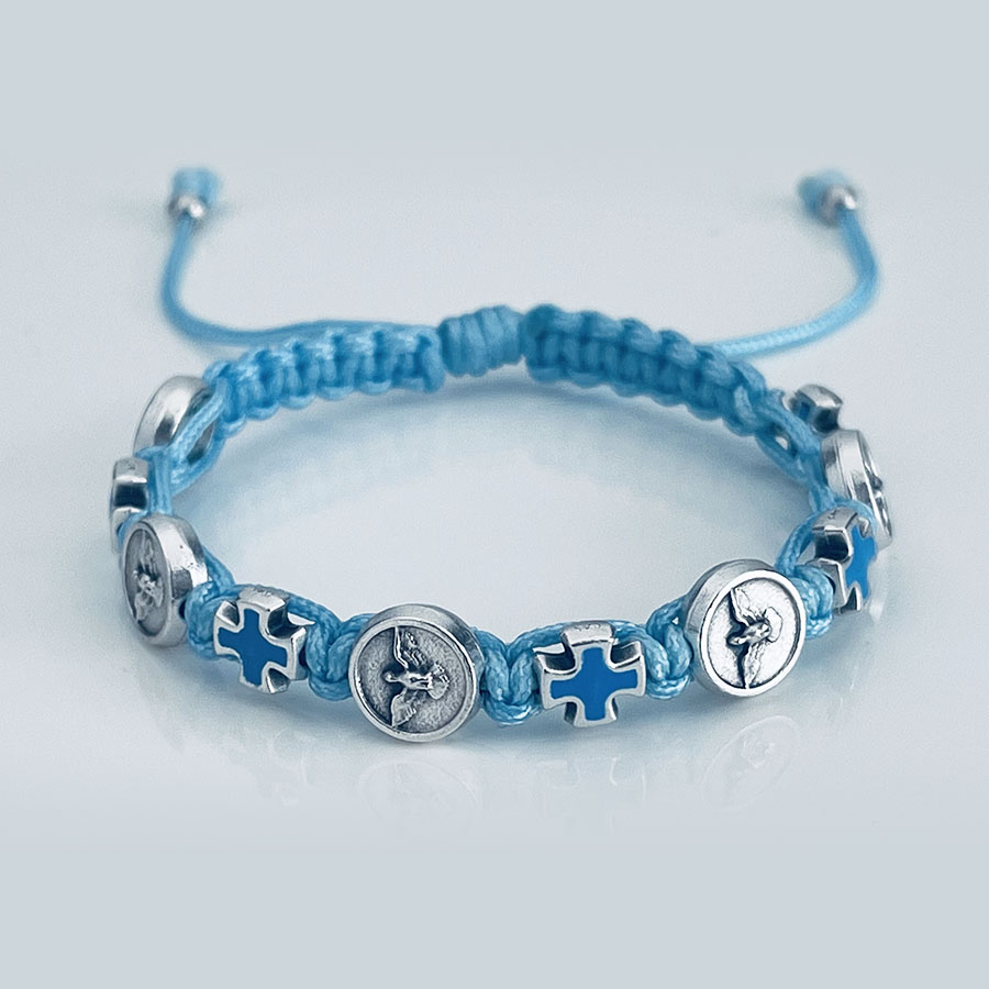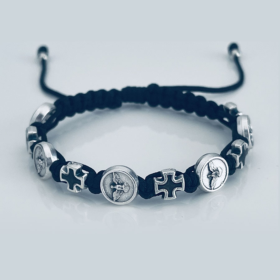 The beautiful bracelet from Međugorje. Each bracelet is handmade using 5 Holy Spirit – Dove and 5 Cross Italian beads. Bracelet can be adjusted from 14 cm to 26 cm (5,5″ to 10″), and this size fits most. They are beautiful medals that protects the person who is wearing it.