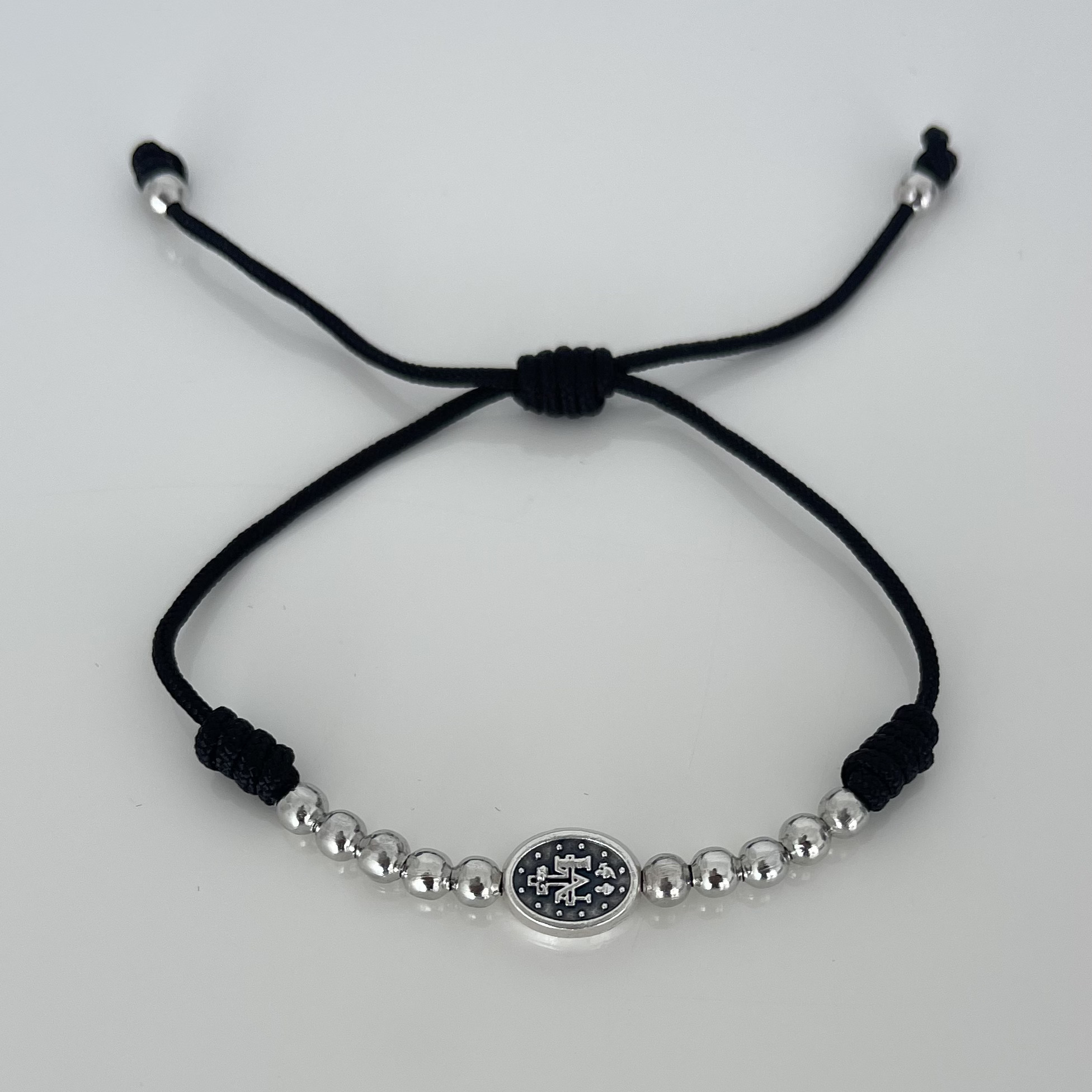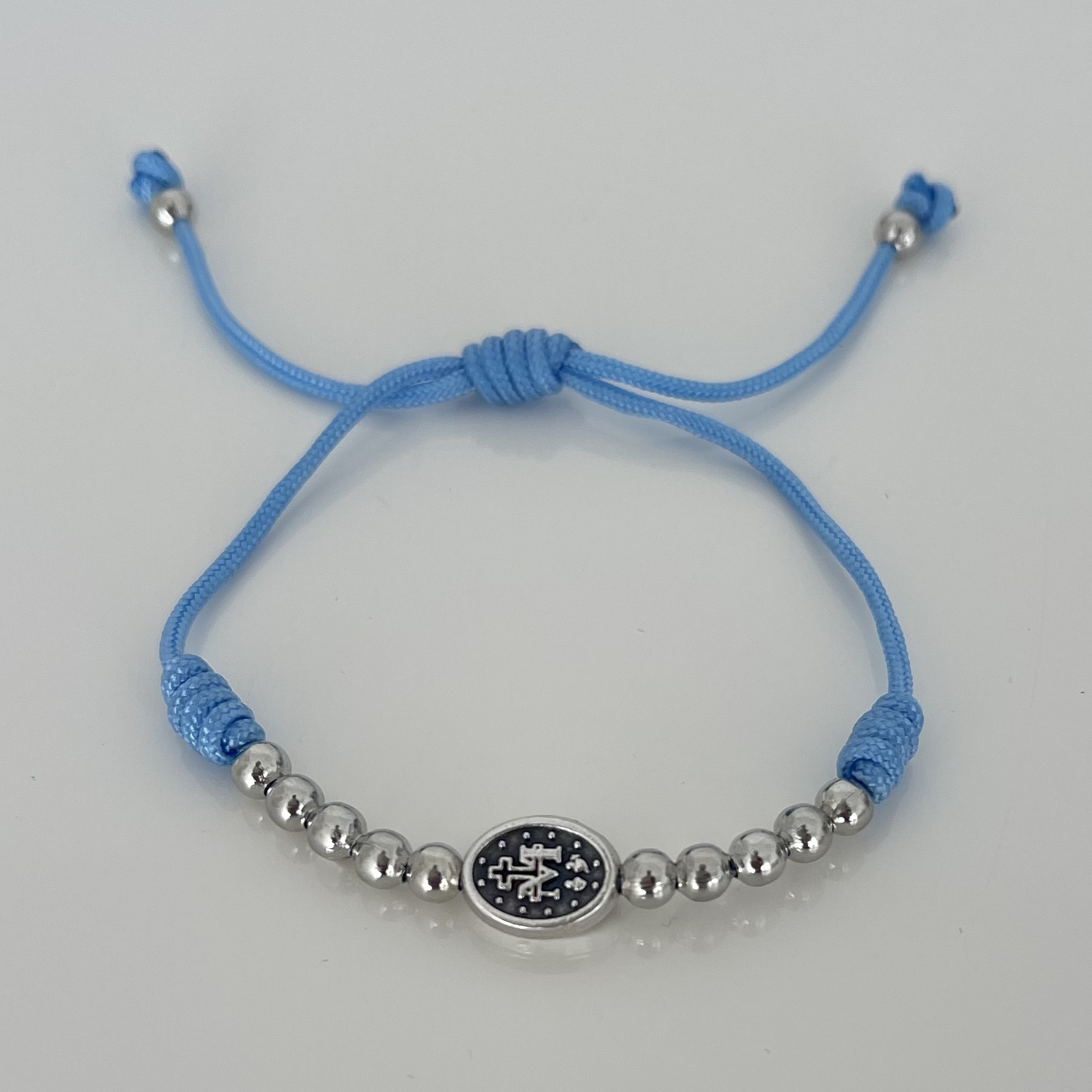 The beautiful bracelet from Međugorje. Each bracelet is handmade using 1 silver Miraculous Italian bead with silver pearls. Bracelet can be adjusted from 14 cm to 26 cm (5,5″ to 10″), and this size fits most. This medal is your way to obtain God's blessings and protection through the intercession of St. Benedict.