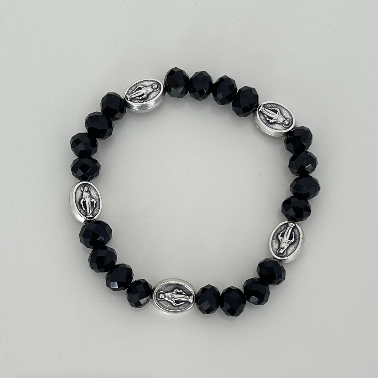 It is handmade in Medjugorje where Our Lady Gospa appeared. Bracelet fits most.The beautiful bracelet from Međugorje. Each bracelet is handmade using 7 silver Miraculous Italian medals with black beads.