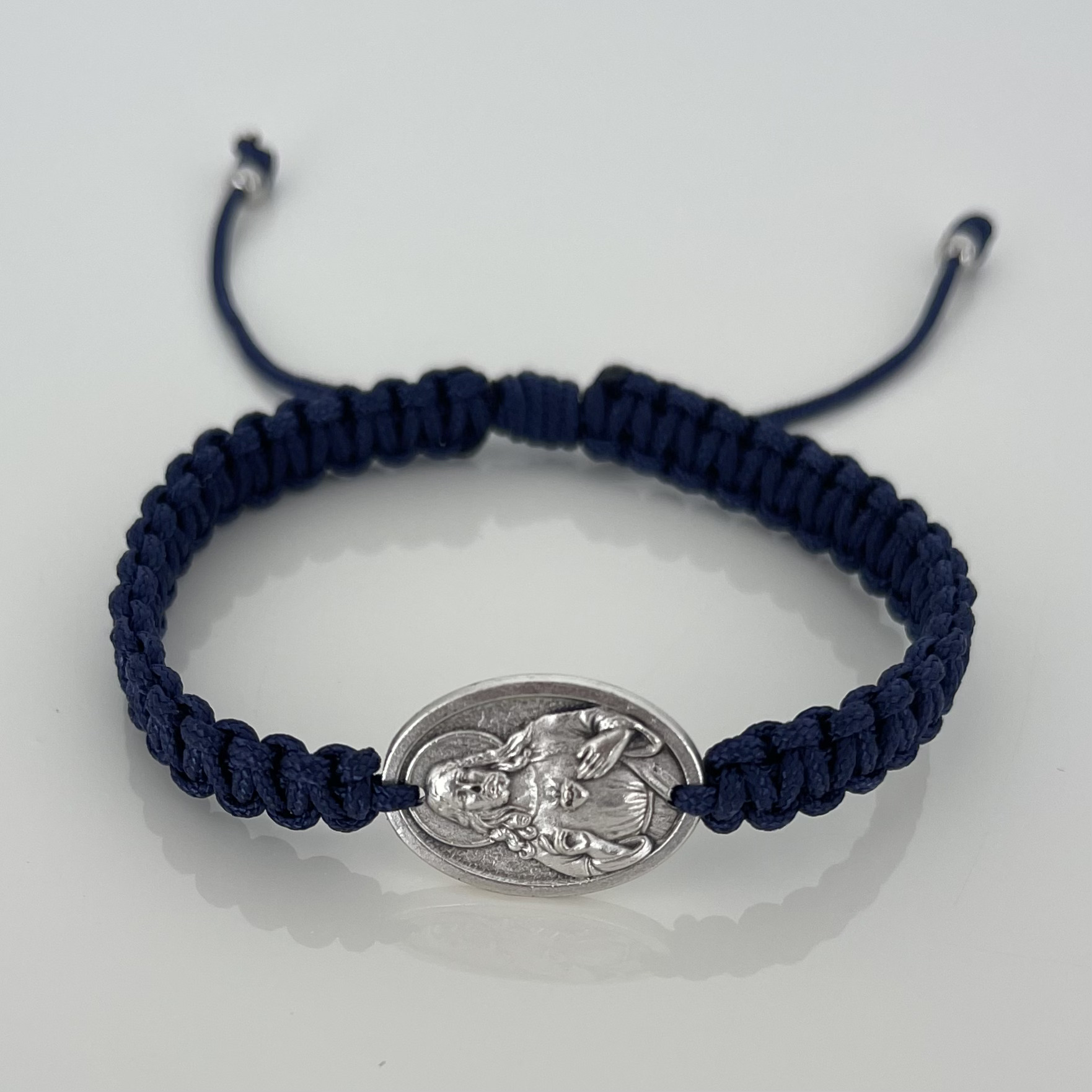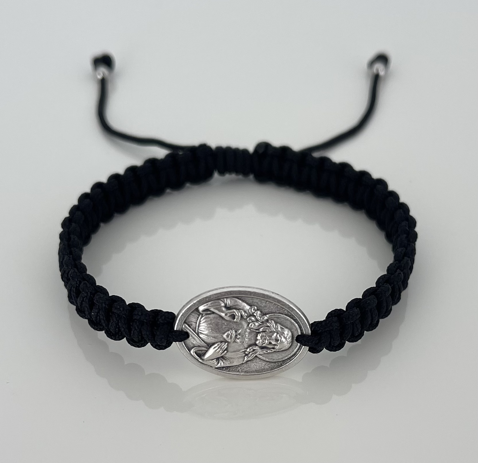 The beautiful bracelet from Međugorje. Each bracelet is handmade using 1 Saint medal on color thread. Bracelet can be adjusted from 14 cm to 26 cm (5,5″ to 10″), and this size fits most.