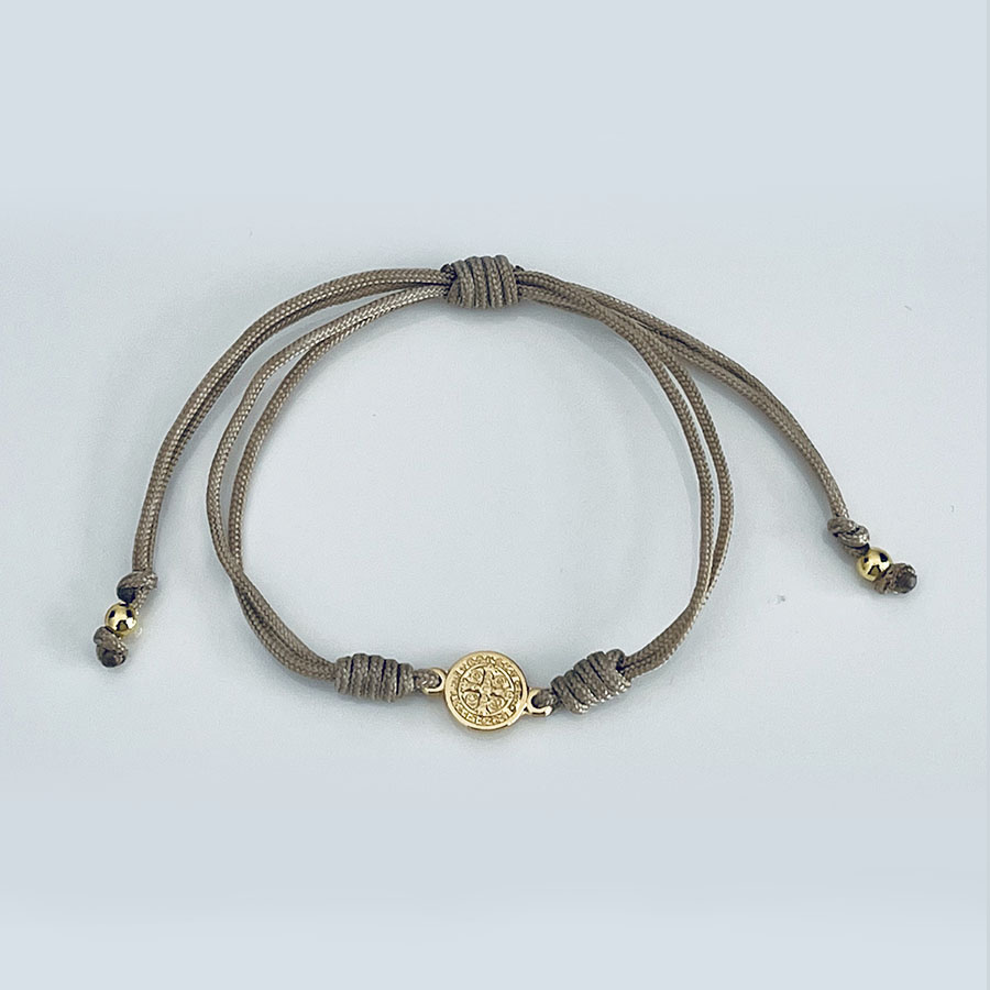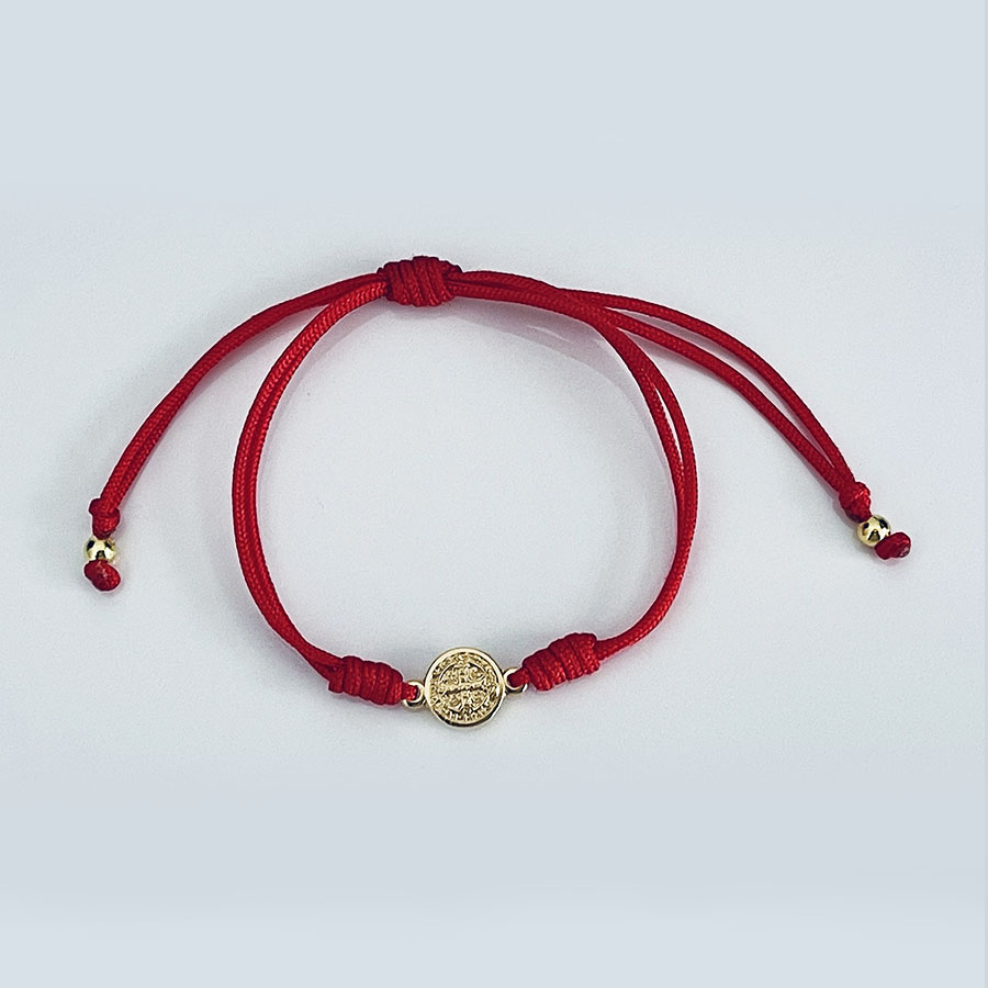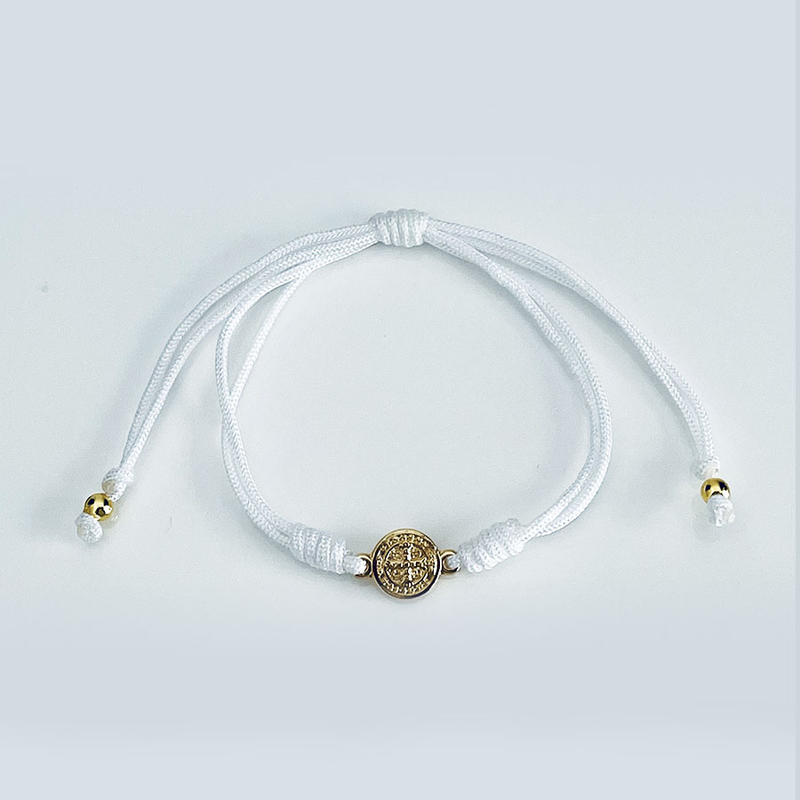 The beautiful bracelet from Međugorje. Each bracelet is handmade using 1 gold St. Benedict Italian bead. Bracelet can be adjusted from 14 cm to 26 cm (5,5″ to 10″), and this size fits most. This medal is your way to obtain God's blessings and protection through the intercession of St. Benedict.