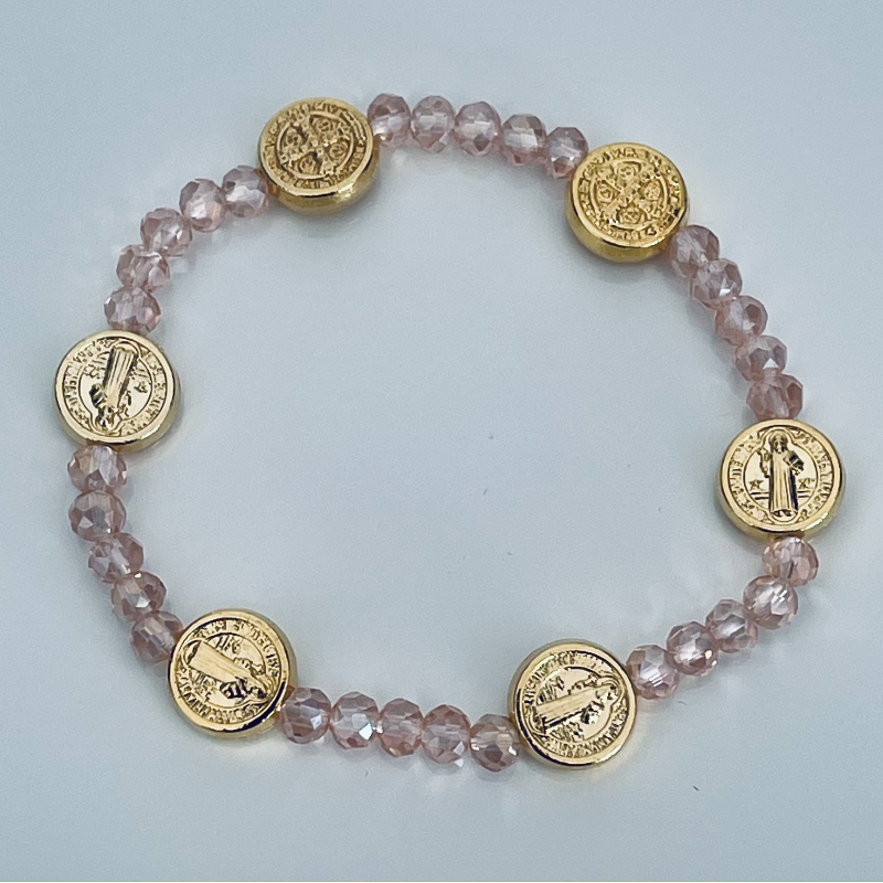 It is handmade in Medjugorje where Our Lady Gospa appeared. Bracelet fits most.The beautiful bracelet from Međugorje. Each bracelet is handmade using 5 gold St. Benedict Italian medals. This medal is your way to obtain God's blessings and protection through the intercession of St. Benedict.